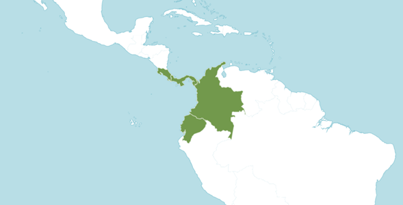 Figura 1: Distribución del Borojó. Ecuador, Colombia, Panamá y Costa Rica. Fuente: Plants of the World Online (2023). Licencia CC BY 3.0.